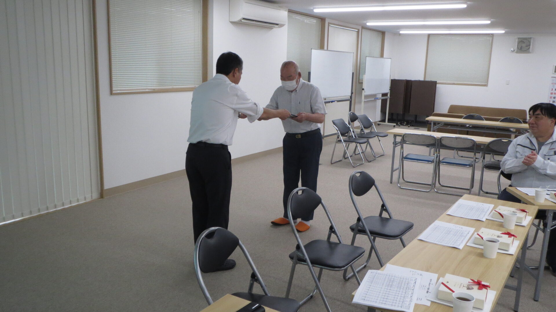 永年の功績に対し、金一封を添えて表彰をしました。弊社での現役時代の高萩氏は