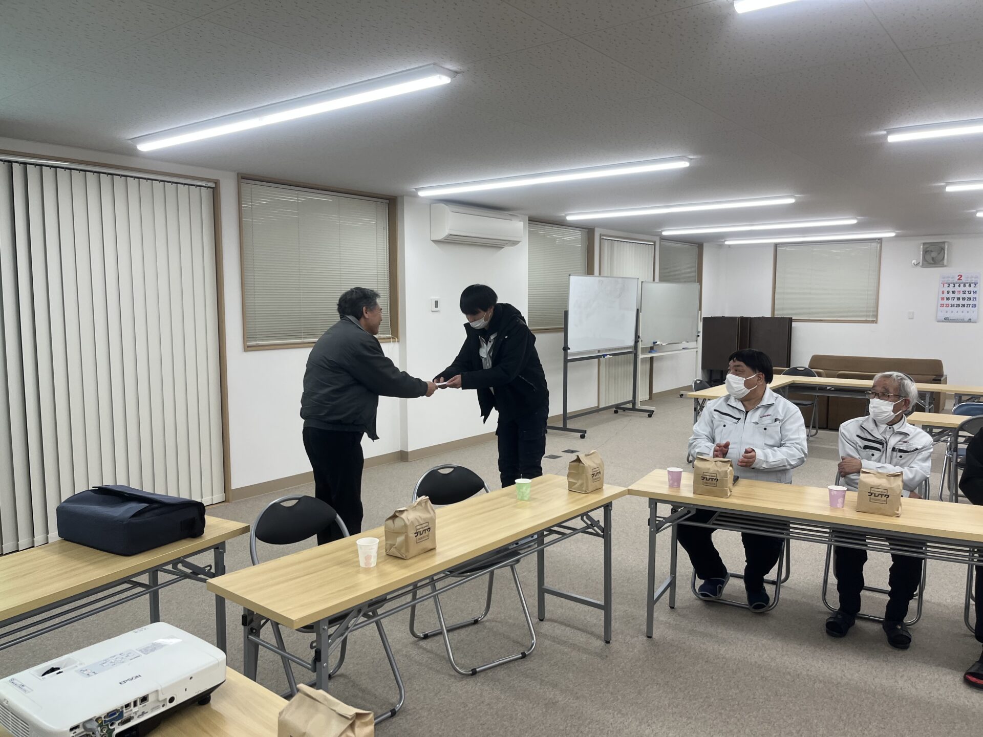 2026.02.12 2月の10日会 2月の10日会が今週火曜の10日に実施されました。 例月通り各自が最近の所感を皆に発表しております。 今回、土木部の岡田主任が結婚入籍しましたので、会社より 結婚祝い金が贈呈されました。